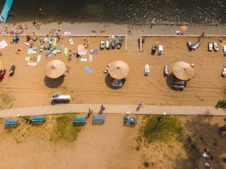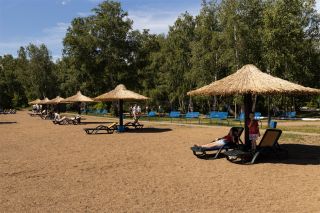 Неподалеку от корпусов находится песчаный пляж, где за дополнительную оплату можно арендовать шезлонги, зонты от солнца и лежаки. Отдыхающие могут бесплатно посещать бассейн, который расположен в одноэтажном здании.